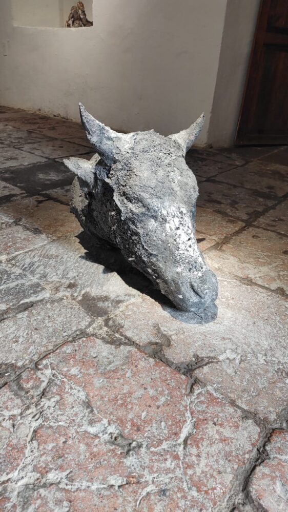 Las bolas hechas de plástico doméstico reciclado y prensado en pieles de animales domésticos, los latones y las fundiciones grises a carne perdida de cráneos de cabras y vacas son objetos que enfrentan al público a lo orgánico, cuya vida ha sido eliminada.
