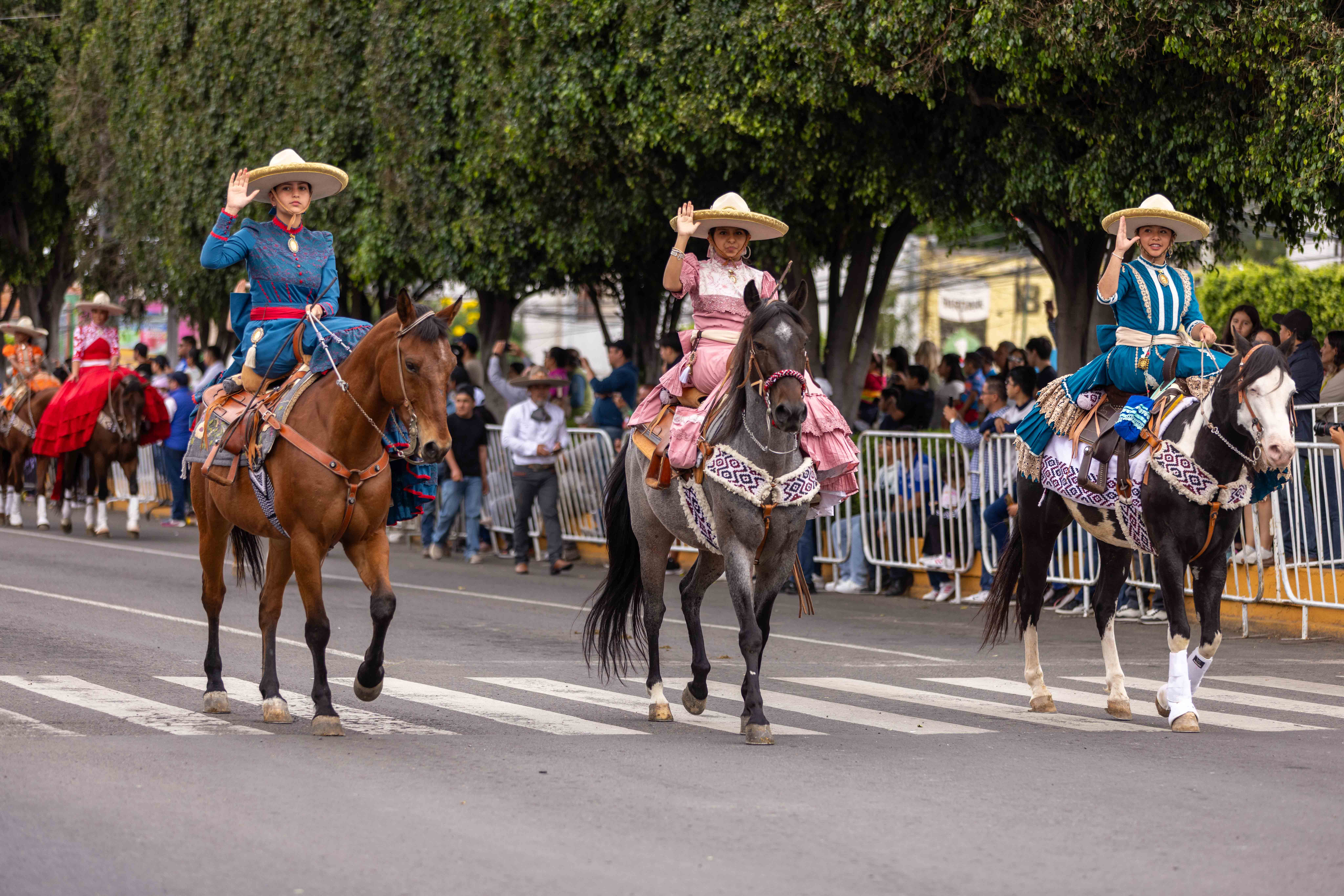 Posteriormente, acompañaron los grupos del Colegio Militarizado “Nuevo México”, el Pentathlón Deportivo Militarizado Universitario, el Pentathlón Deportivo Militarizado Universitario de América, así como agrupamientos escolares de secundarias técnicas, secundarias generales, CECYTEQ, COBAQ, CONALEP y la Centenaria Benemérita Escuela Normal del Estado, y la Asociación de C h a r r o s.