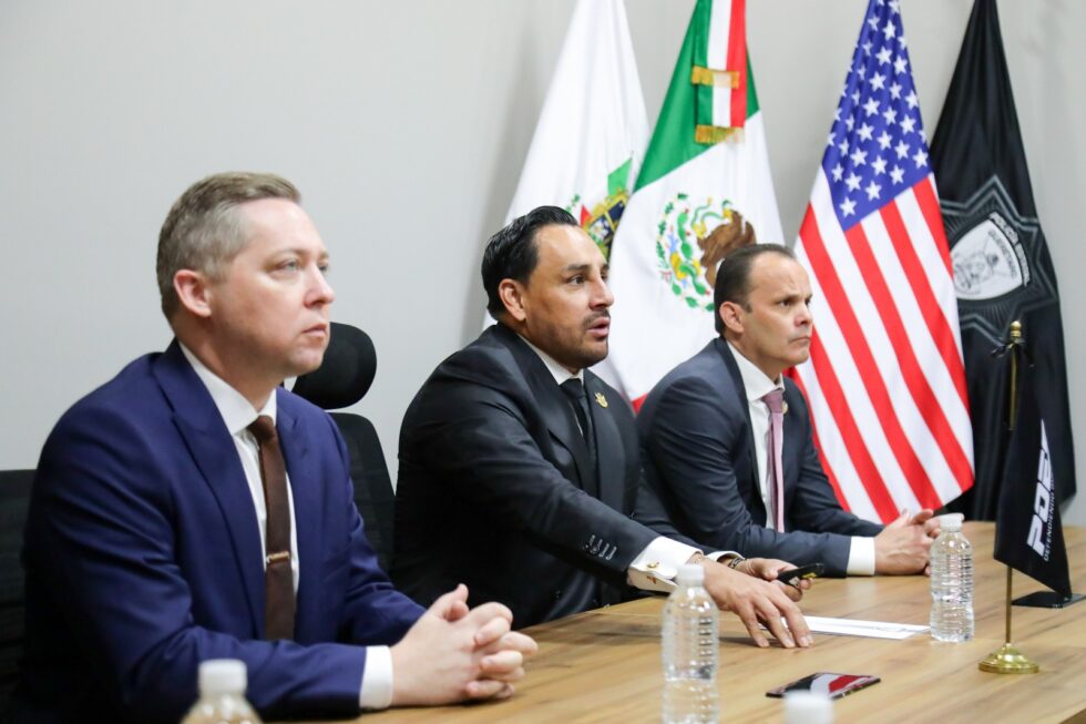 El secretario de Seguridad Ciudadana, Iován Elías Pérez Hernández, recibió a autoridades del Buró Federal de Investigaciones (FBI) en México, Tenoch Aguilar y Aaron Mulroy, quienes realizaron una visita al Complejo de Seguridad “Rhino” para conocer directamente las capacidades operativas, tecnológicas y de infraestructura que se tienen en la entidad por parte de la Policía Estatal.