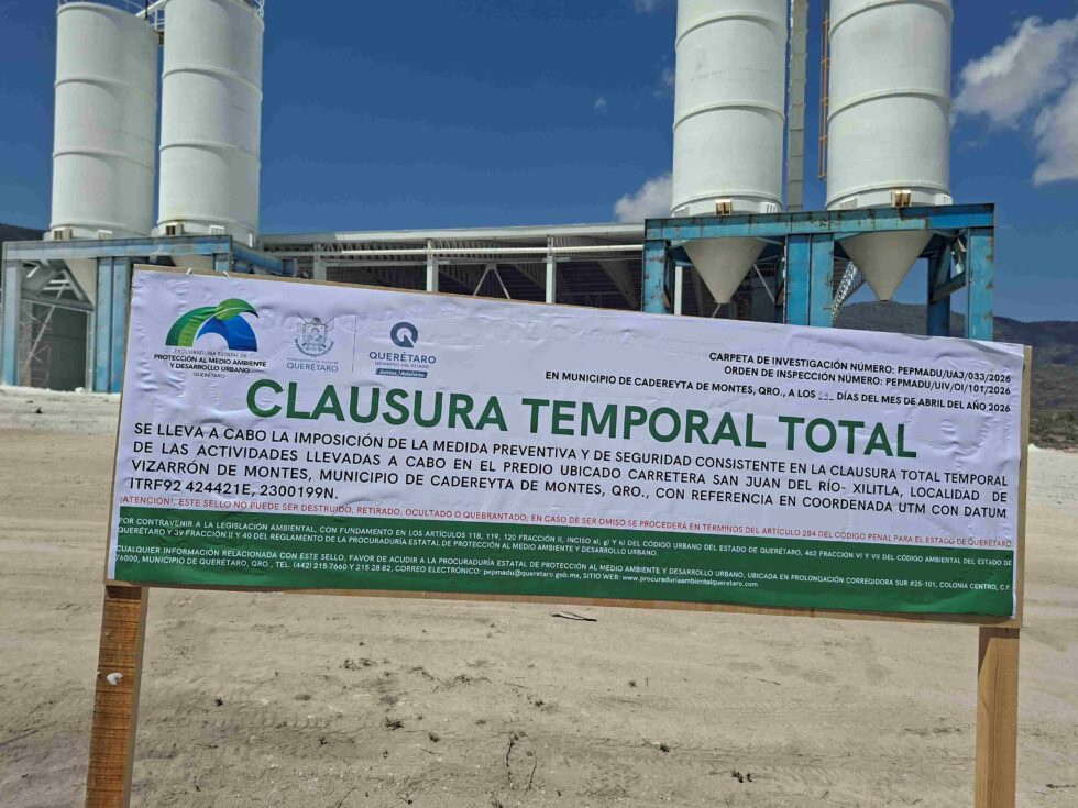 • En atención a denuncias ciudadanas por exceso de polvo y molestias generadas por una actividad comercial, la Procuraduría Estatal de Protección al Medio Ambiente (PEPMADU) clausuró una planta de trituración y molienda de material pétreo, ubicada en Vizarrón de Montes, en Cadereyta.