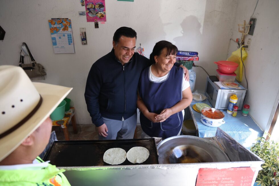 “Y como nos lo pidió el gobernador Mauricio Kuri, estamos aquí en San Pedro, en la calle, escuchando a la gente porque estamos Aquí Contigo y en este caso estamos con nuestra querida Chivis en su paletería”, explicó.