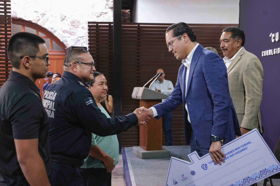 El presidente municipal de Corregidora, Chepe Guerrero, encabezó la entrega de apoyos del programa “Cuidamos a Quienes Nos Cuidan, Mejorando sus Hogares”, los cuales consisten en estímulos económicos a 50 policías municipales destinados para al acceso, mejoramiento o construcción de una vivienda digna y segura.