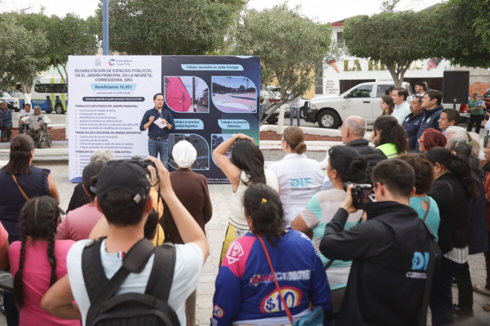 El presidente municipal de Corregidora, Chepe Guerrero, entregó la rehabilitación del Jardín Principal de La Negreta, con una inversión de más de 2 millones de pesos. Esta obra es la primera en concluir dentro del proyecto de mejora que también incluye la Unidad Deportiva y la Biblioteca de la zona, beneficiando a más de 16 mil habitantes.