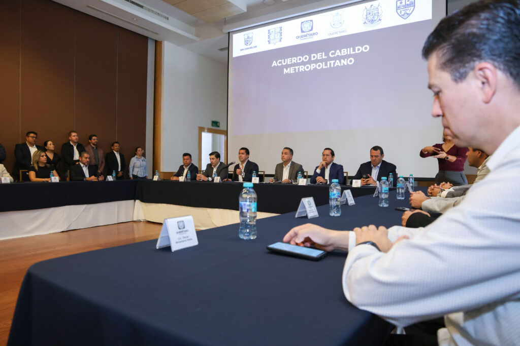 - En su calidad de presidente del Cabildo Metropolitano, el alcalde de Querétaro, acompañado del secretario de Gobierno del Estado, Eric Gudiño Torres, encabezó la firma del acuerdo intermunicipal junto con los presidentes municipales de El Marqués, Corregidora, Huimilpan y San Juan del Río, que establece la prohibición de espectáculos y eventos públicos que promuevan la apología del delito y la cultura de la violencia a través de expresiones musicales